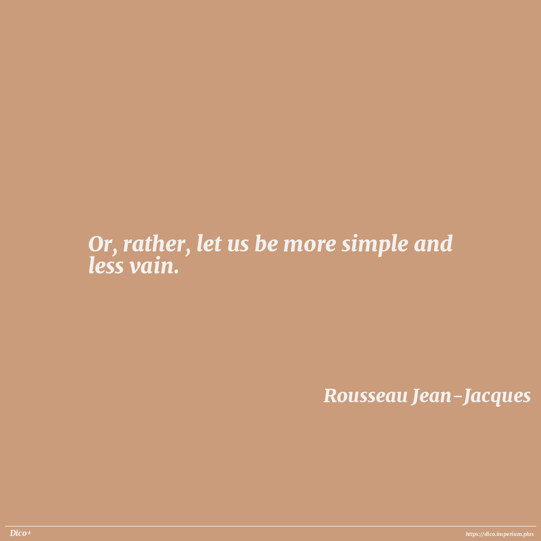 Or, rather, let us be more simple and less vain.