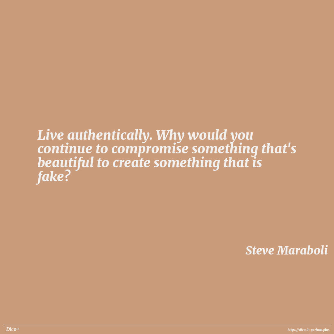 Live authentically. Why would you continue to compromise something that's beautiful to create something that is fake?
