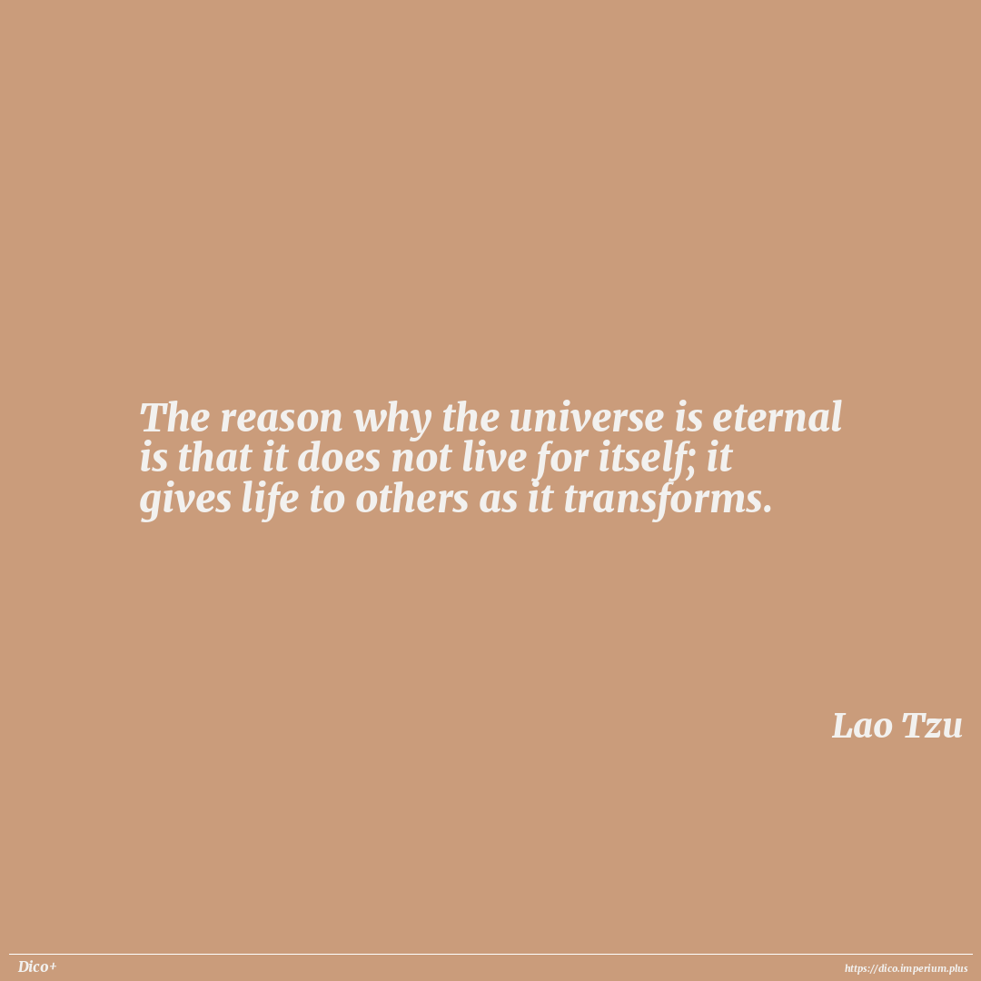 The reason why the universe is eternal is that it does not live for itself; it gives life to others as it transforms.