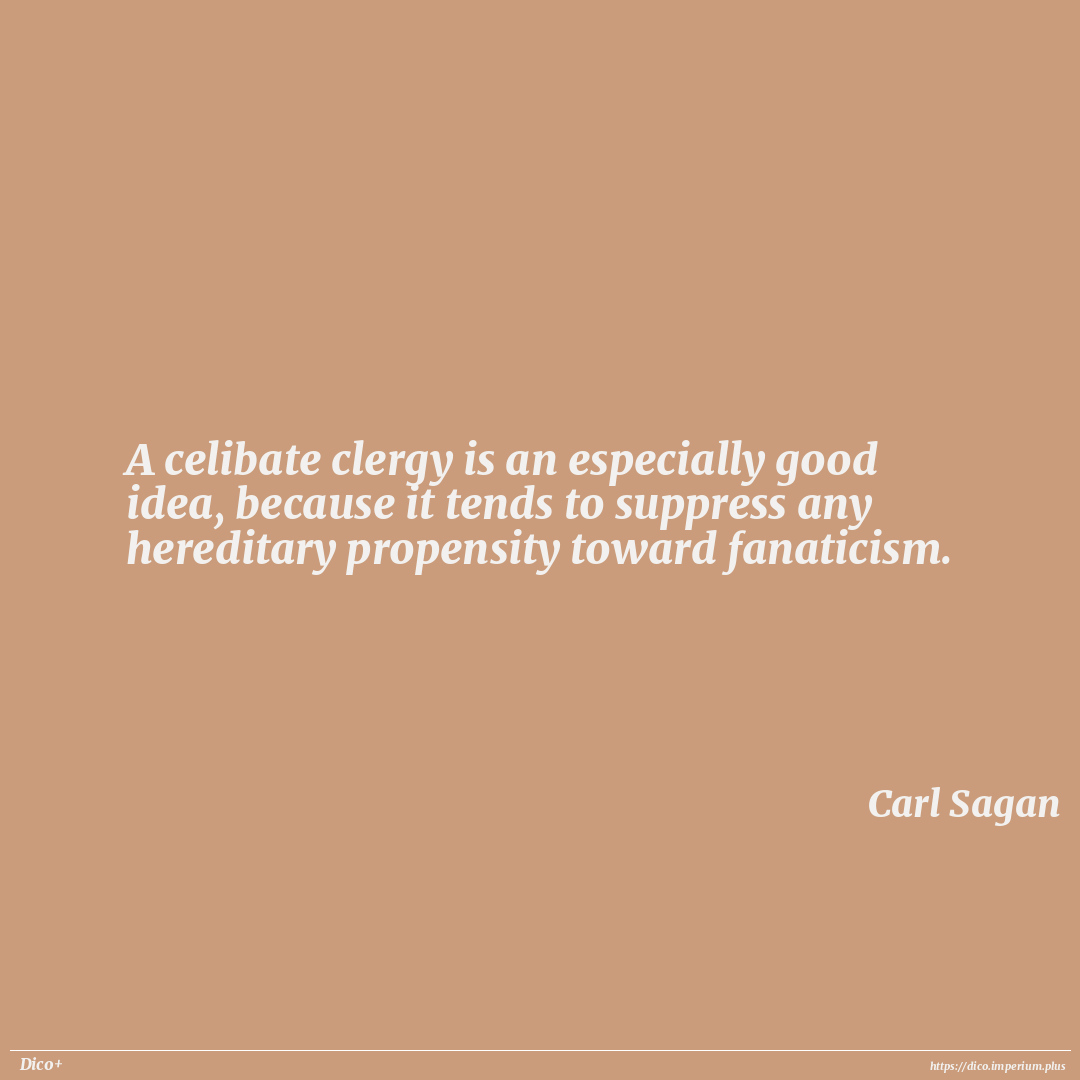 A celibate clergy is an especially good idea, because it tends to suppress any hereditary propensity toward fanaticism.