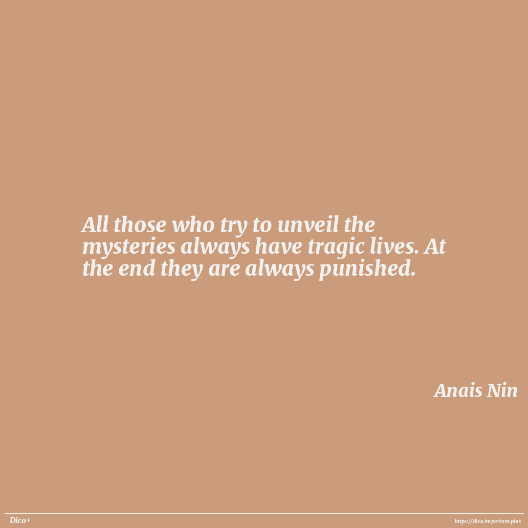 All those who try to unveil the mysteries always have tragic lives. At the end they are always punished.
