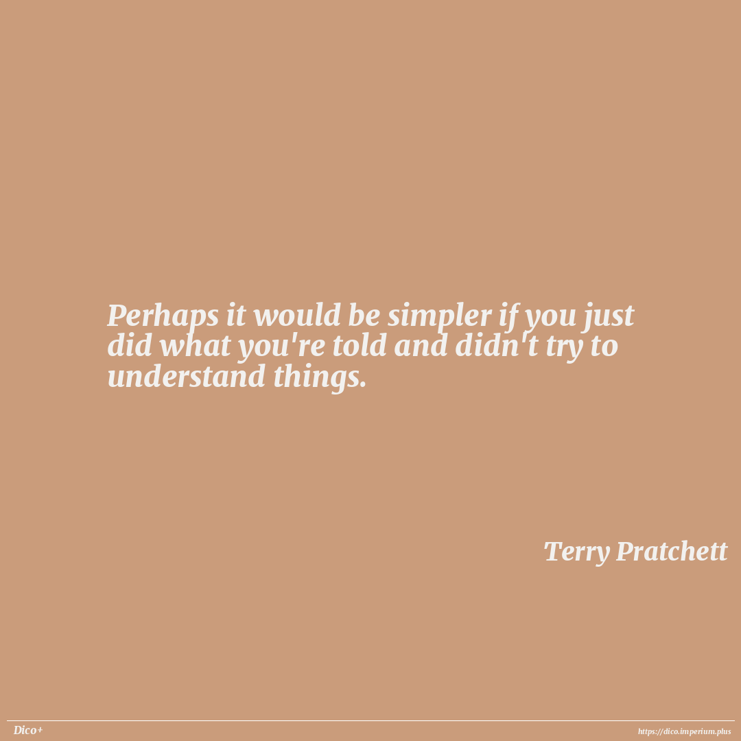 Perhaps it would be simpler if you just did what you're told and didn't try to understand things.