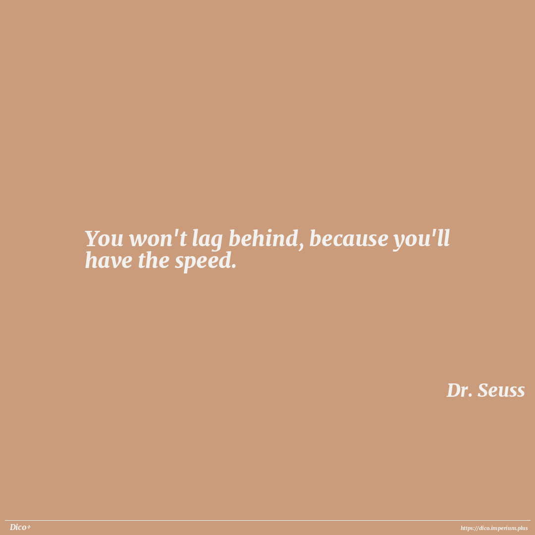 You won't lag behind, because you'll have the speed.