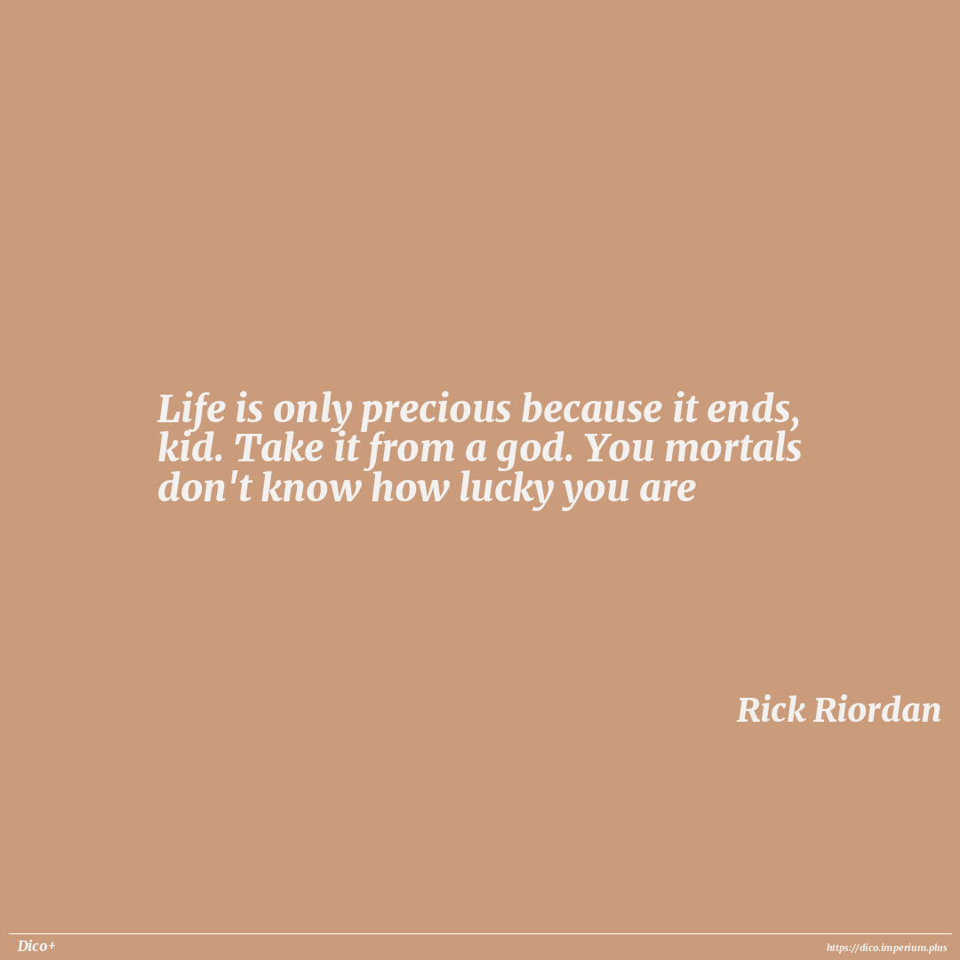 Life is only precious because it ends, kid. Take it from a god. You mortals don't know how lucky you are