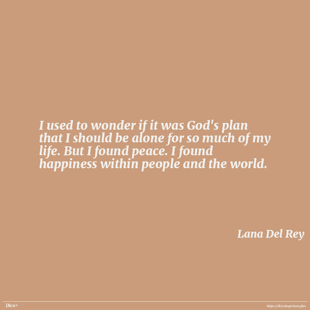 I used to wonder if it was God's plan that I should be alone for so much of my life. But I found peace. I found happiness within people and the world.