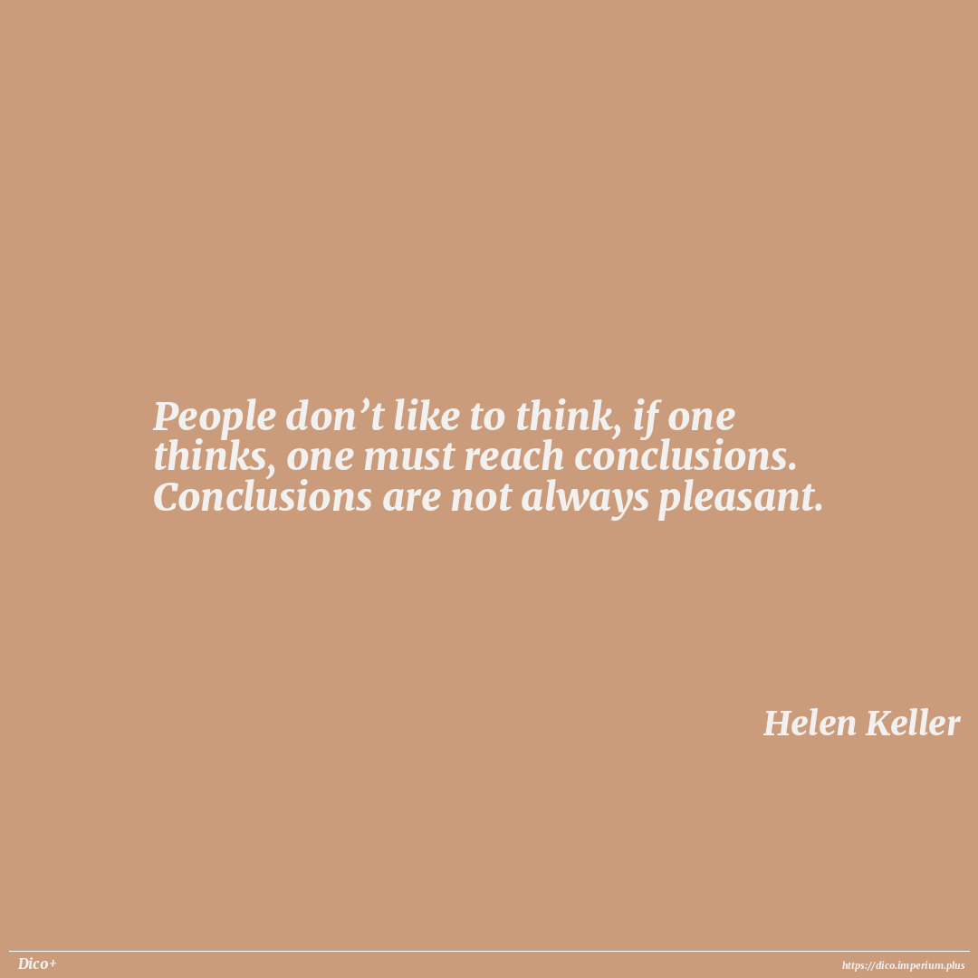 People don’t like to think, if one thinks, one must reach conclusions. Conclusions are not always pleasant.