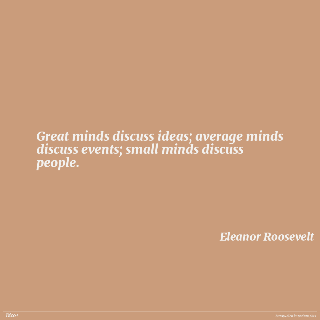 Great minds discuss ideas; average minds discuss events; small minds discuss people.