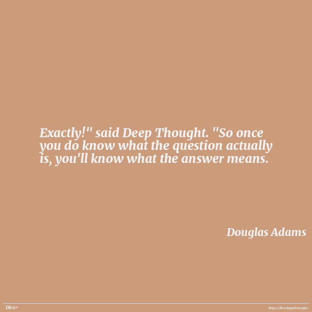 Exactly!" said Deep Thought. "So once you do know what the question actually is, you'll know what the answer means.