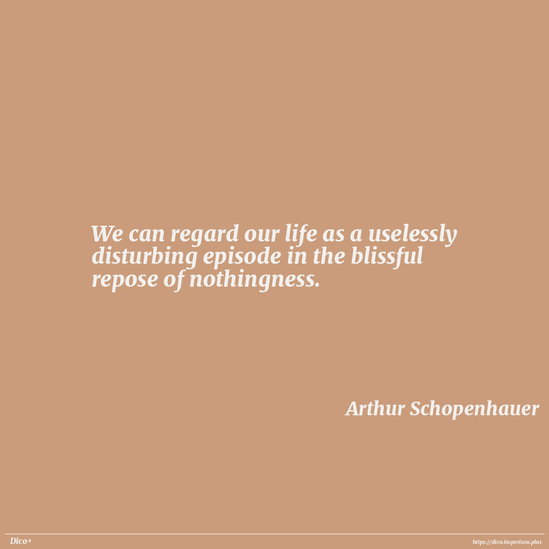 We can regard our life as a uselessly disturbing episode in the blissful repose of nothingness.