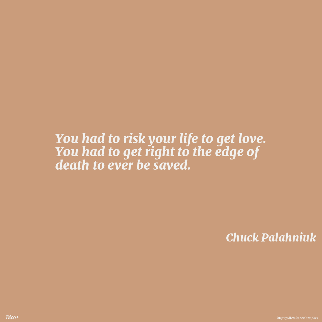 You had to risk your life to get love. You had to get right to the edge of death to ever be saved.