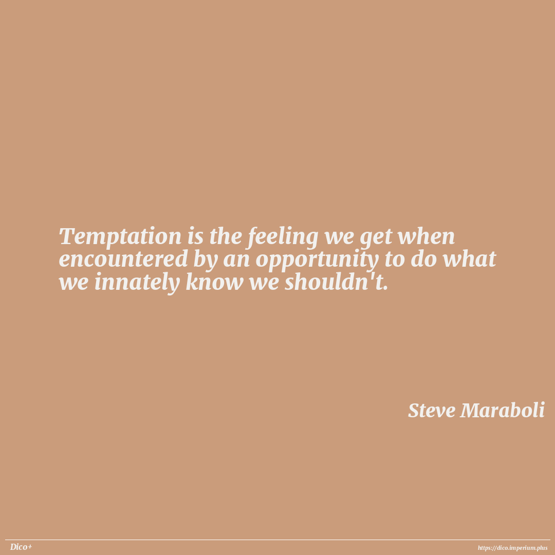 Temptation is the feeling we get when encountered by an opportunity to do what we innately know we shouldn't.