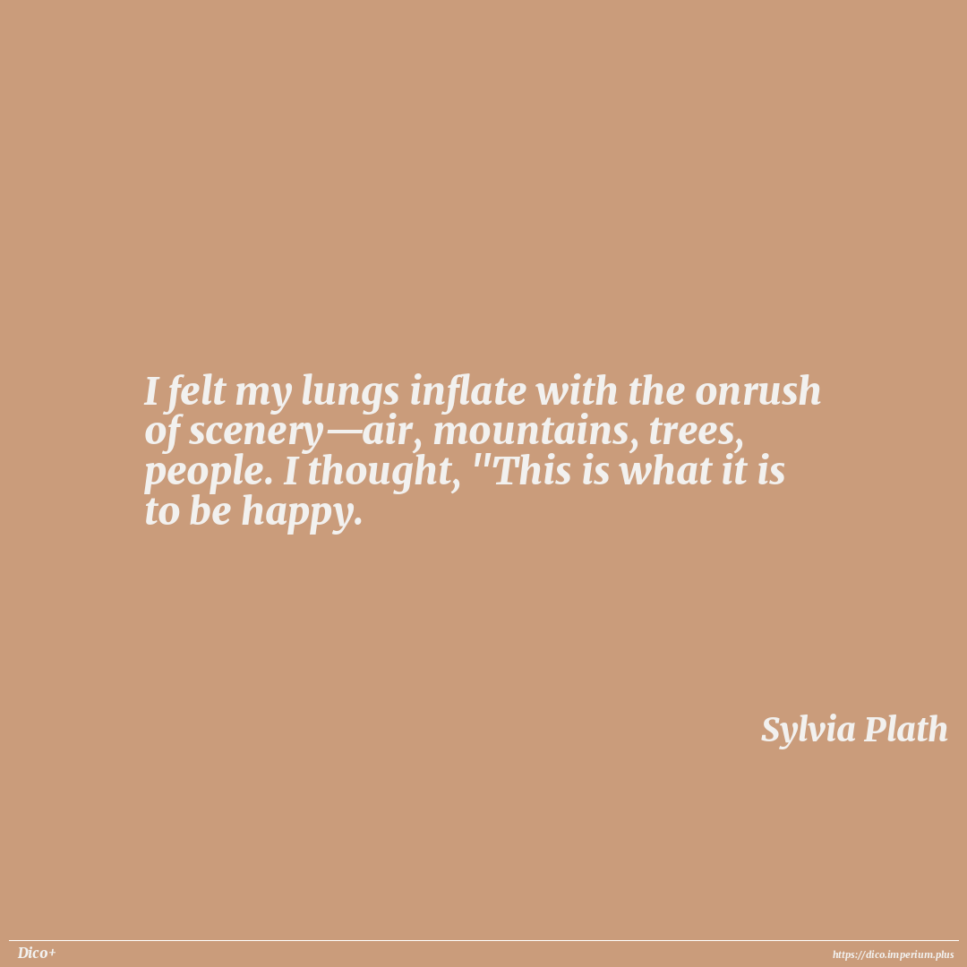I felt my lungs inflate with the onrush of scenery—air, mountains, trees, people. I thought, "This is what it is to be happy.