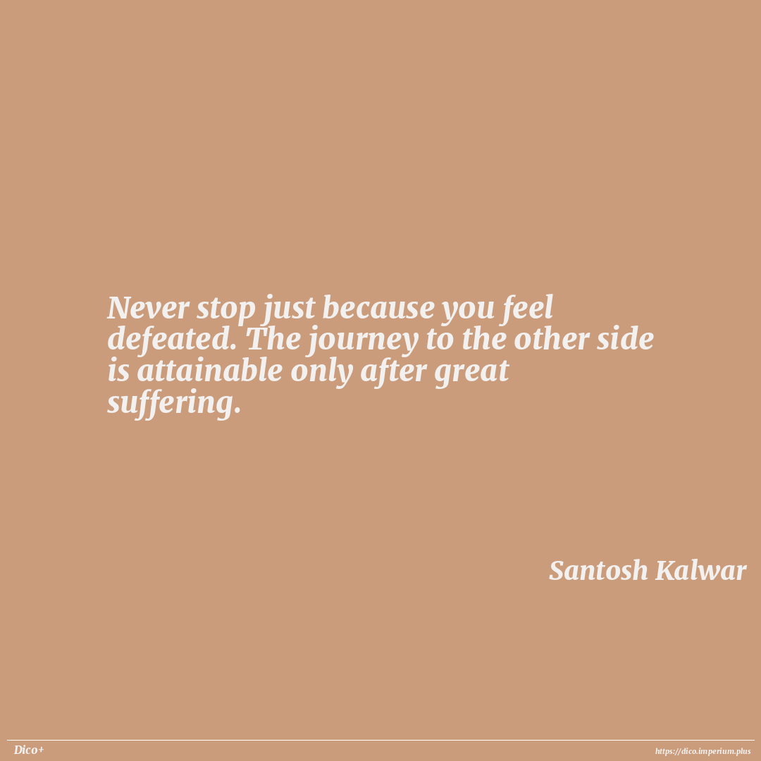 Never stop just because you feel defeated. The journey to the other side is attainable only after great suffering.