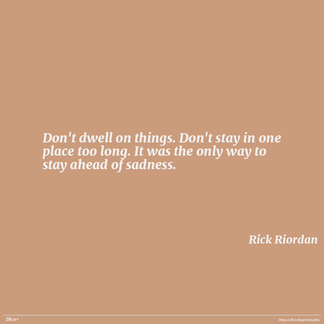 Don't dwell on things. Don't stay in one place too long. It was the only way to stay ahead of sadness.