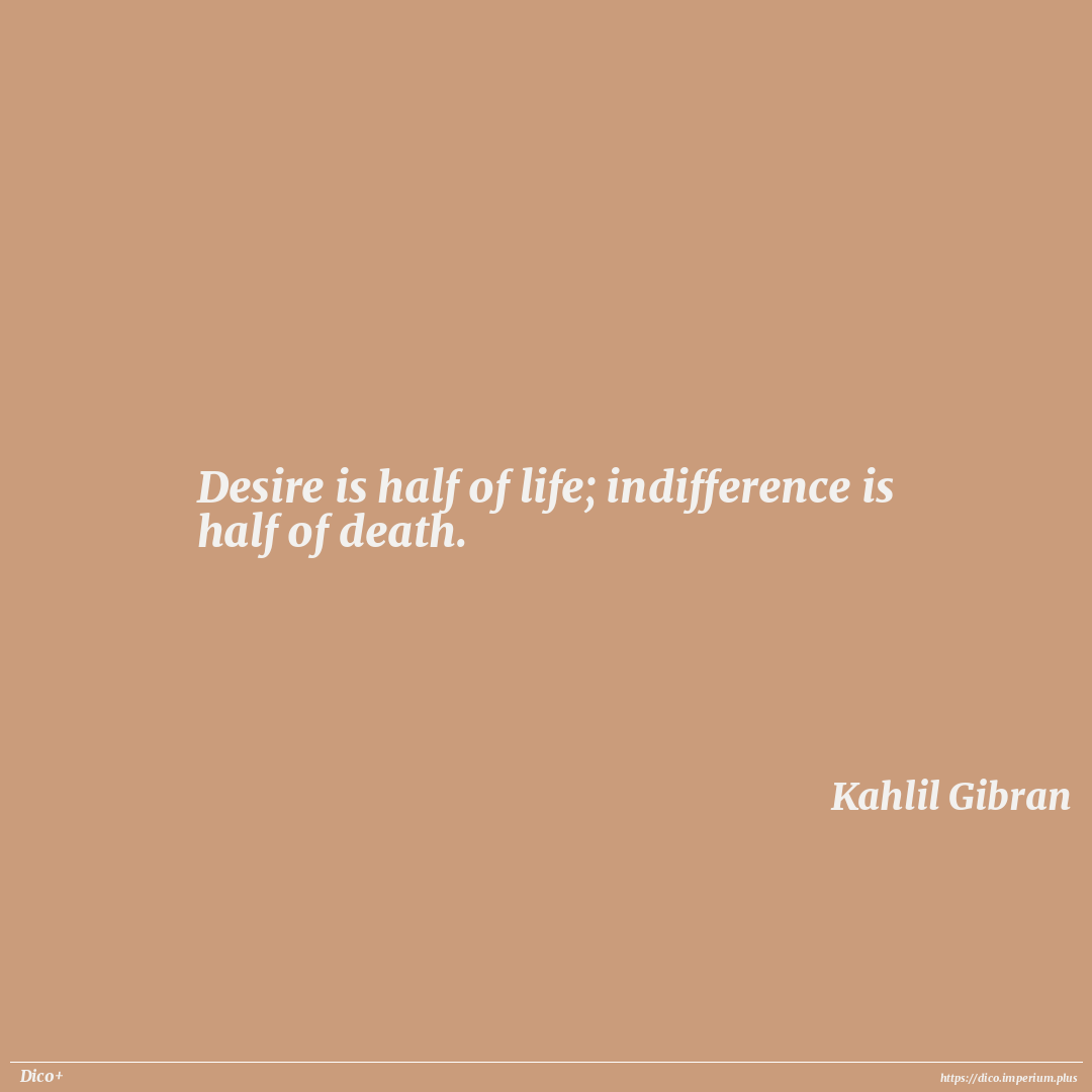 Desire is half of life; indifference is half of death.