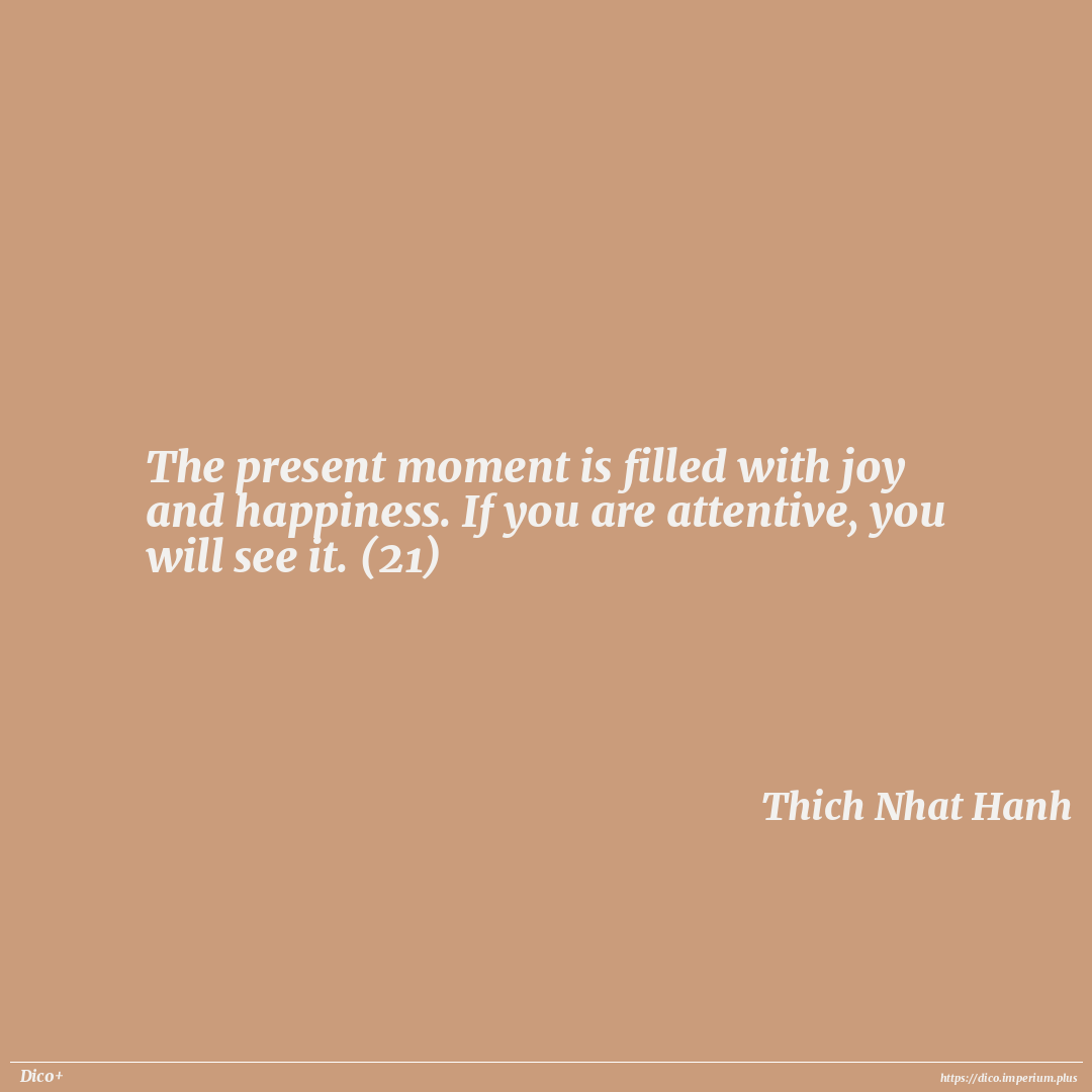 The present moment is filled with joy and happiness. If you are attentive, you will see it. (21)