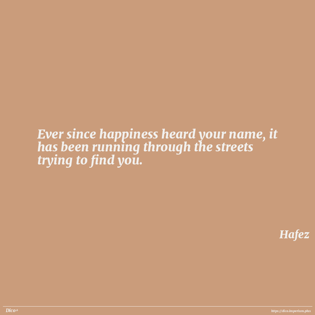 Ever since happiness heard your name, it has been running through the streets trying to find you.