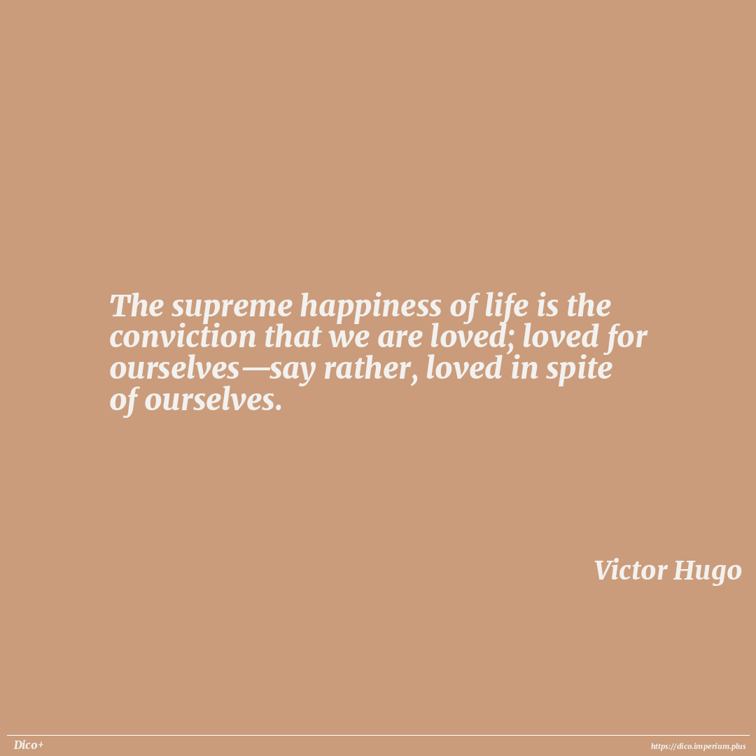 The supreme happiness of life is the conviction that we are loved; loved for ourselves—say rather, loved in spite of ourselves.