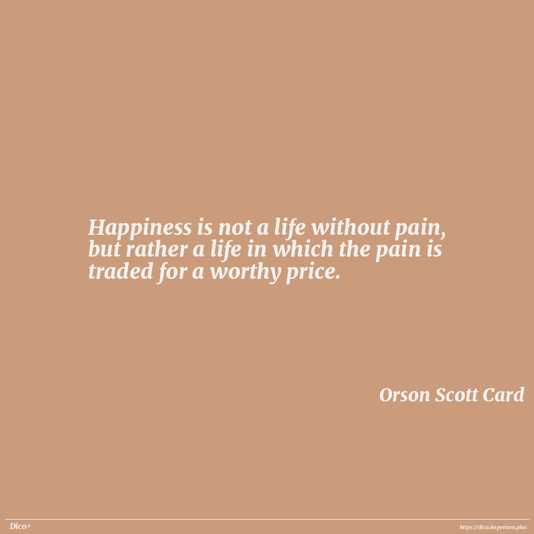 Happiness is not a life without pain, but rather a life in which the pain is traded for a worthy price.