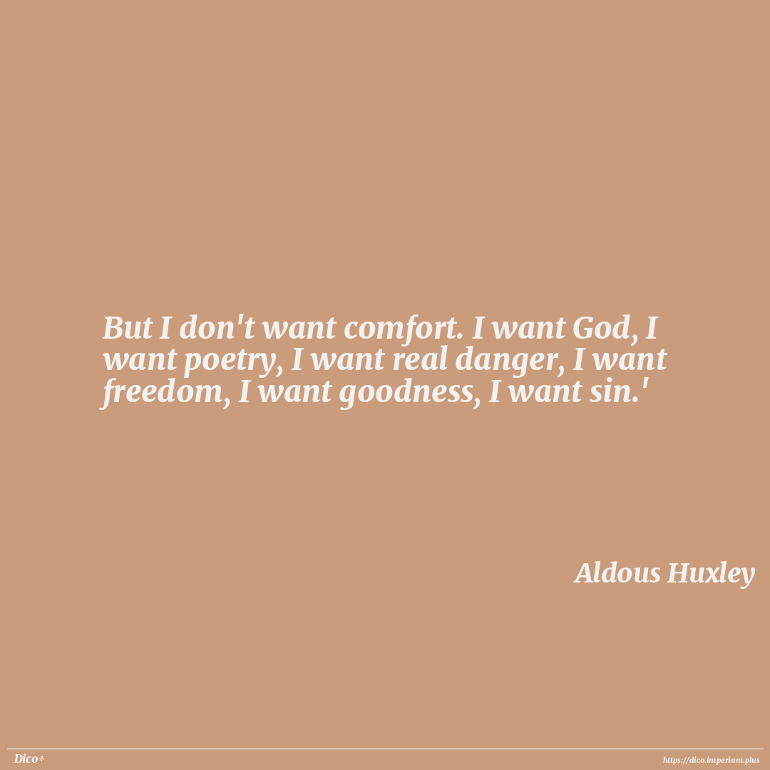 But I don't want comfort. I want God, I want poetry, I want real danger, I want freedom, I want goodness, I want sin.'