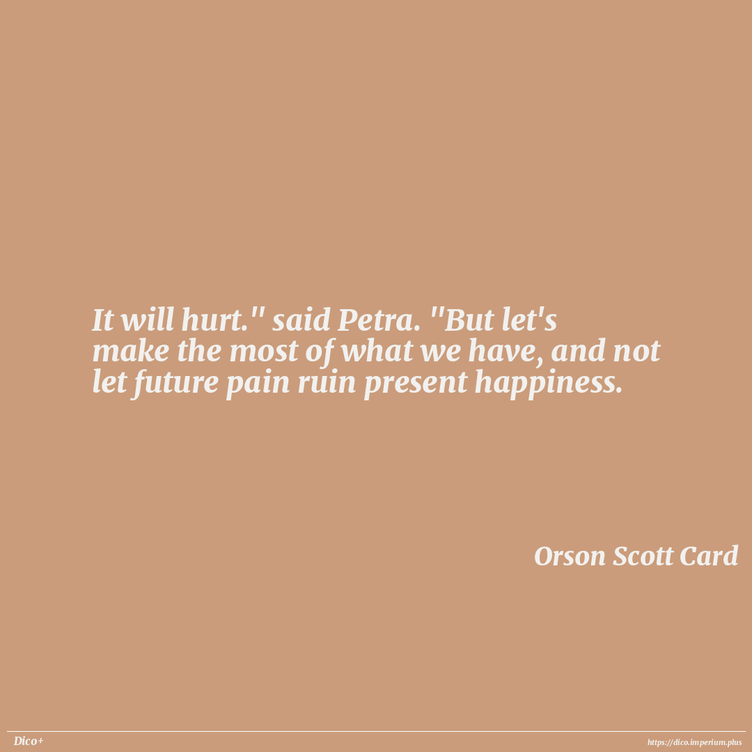 It will hurt." said Petra. "But let's make the most of what we have, and not let future pain ruin present happiness.