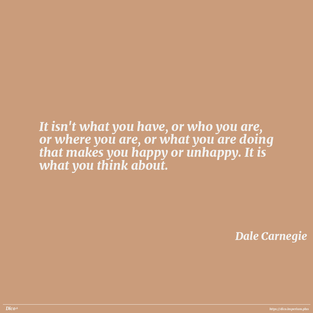 It isn't what you have, or who you are, or where you are, or what you are doing that makes you happy or unhappy. It is what you think about.