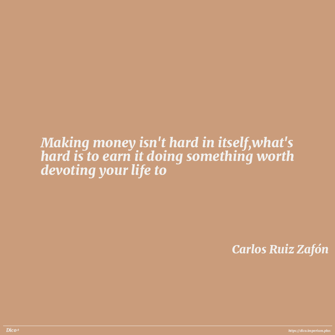 Making money isn't hard in itself,what's hard is to earn it doing something worth devoting your life to