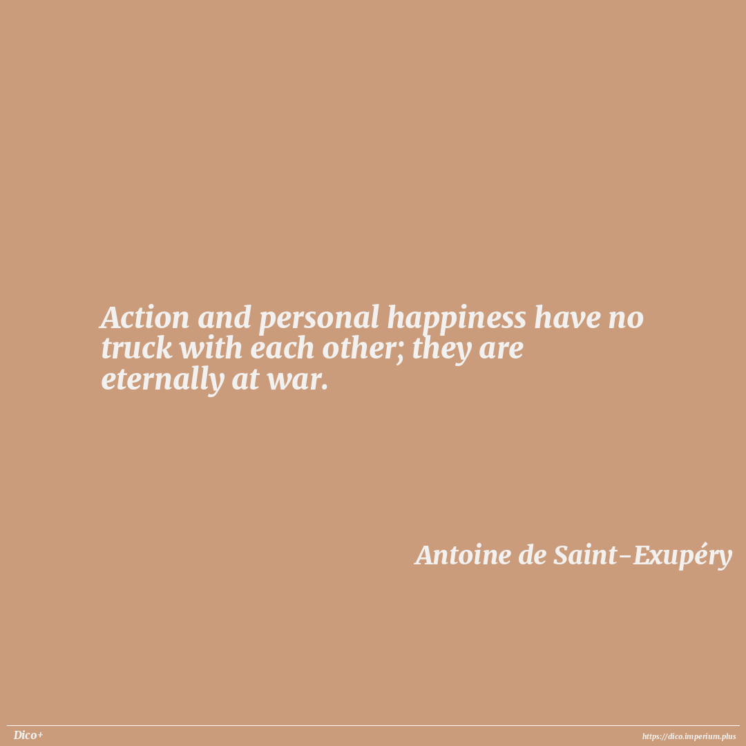 Action and personal happiness have no truck with each other; they are eternally at war.