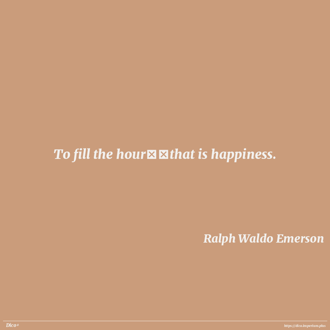 To fill the hour──that is happiness.