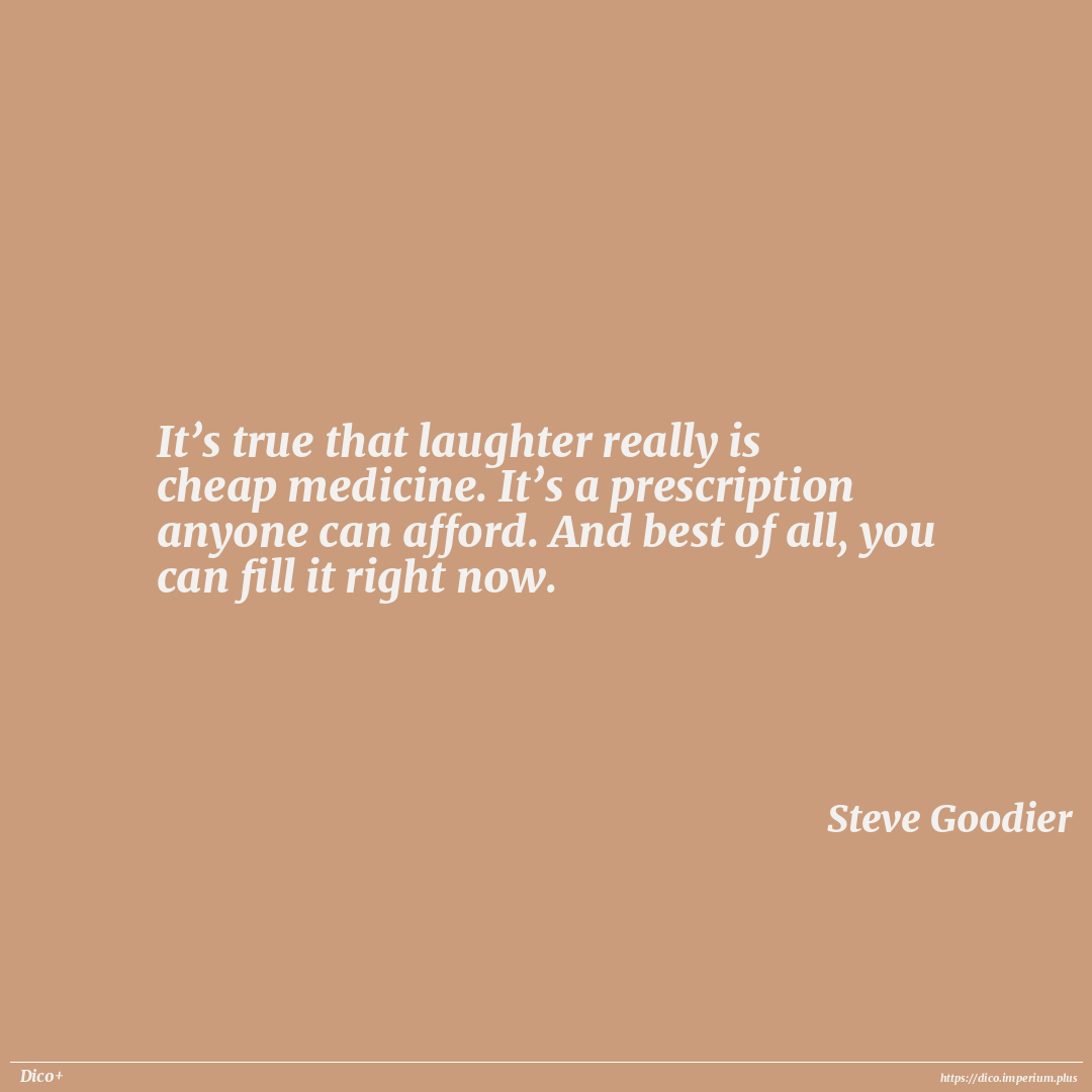 It’s true that laughter really is cheap medicine. It’s a prescription anyone can afford. And best of all, you can fill it right now.