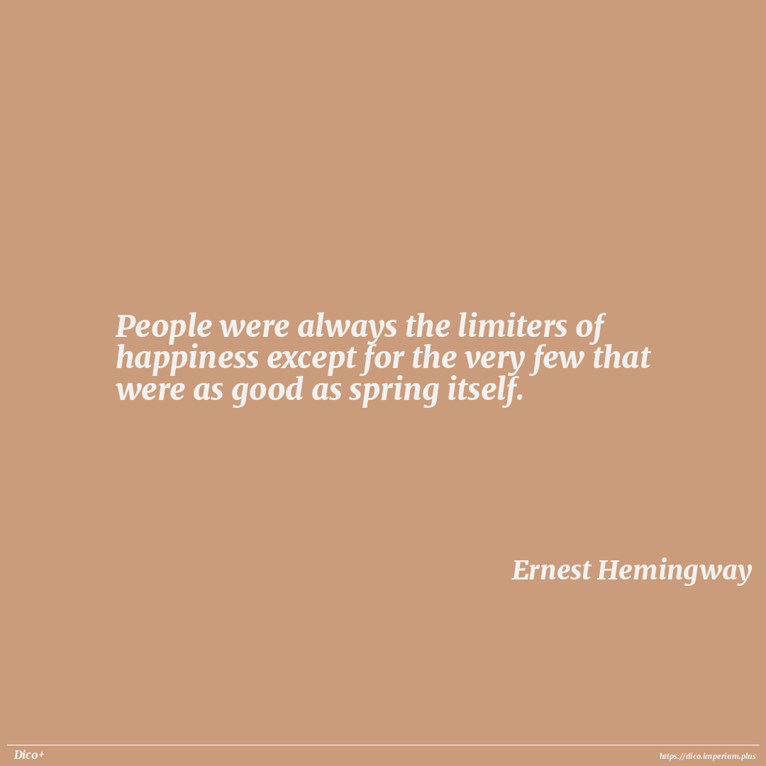 People were always the limiters of happiness except for the very few that were as good as spring itself.