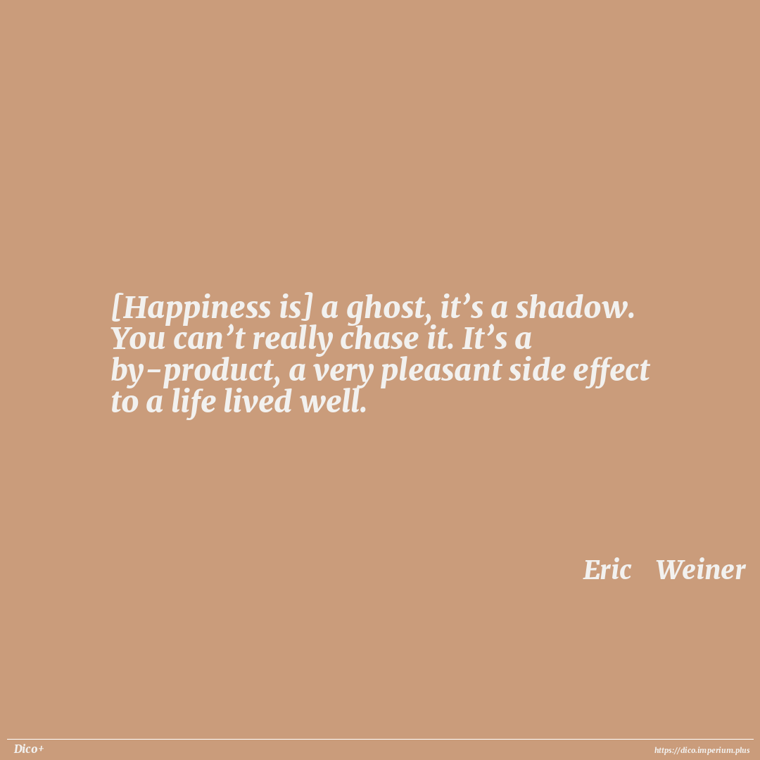[Happiness is] a ghost, it’s a shadow. You can’t really chase it. It’s a by-product, a very pleasant side effect to a life lived well.