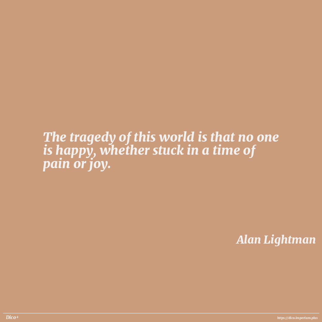 The tragedy of this world is that no one is happy, whether stuck in a time of pain or joy.