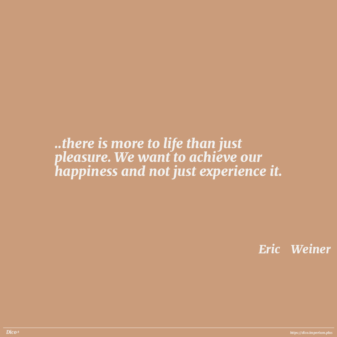 ..there is more to life than just pleasure. We want to achieve our happiness and not just experience it.