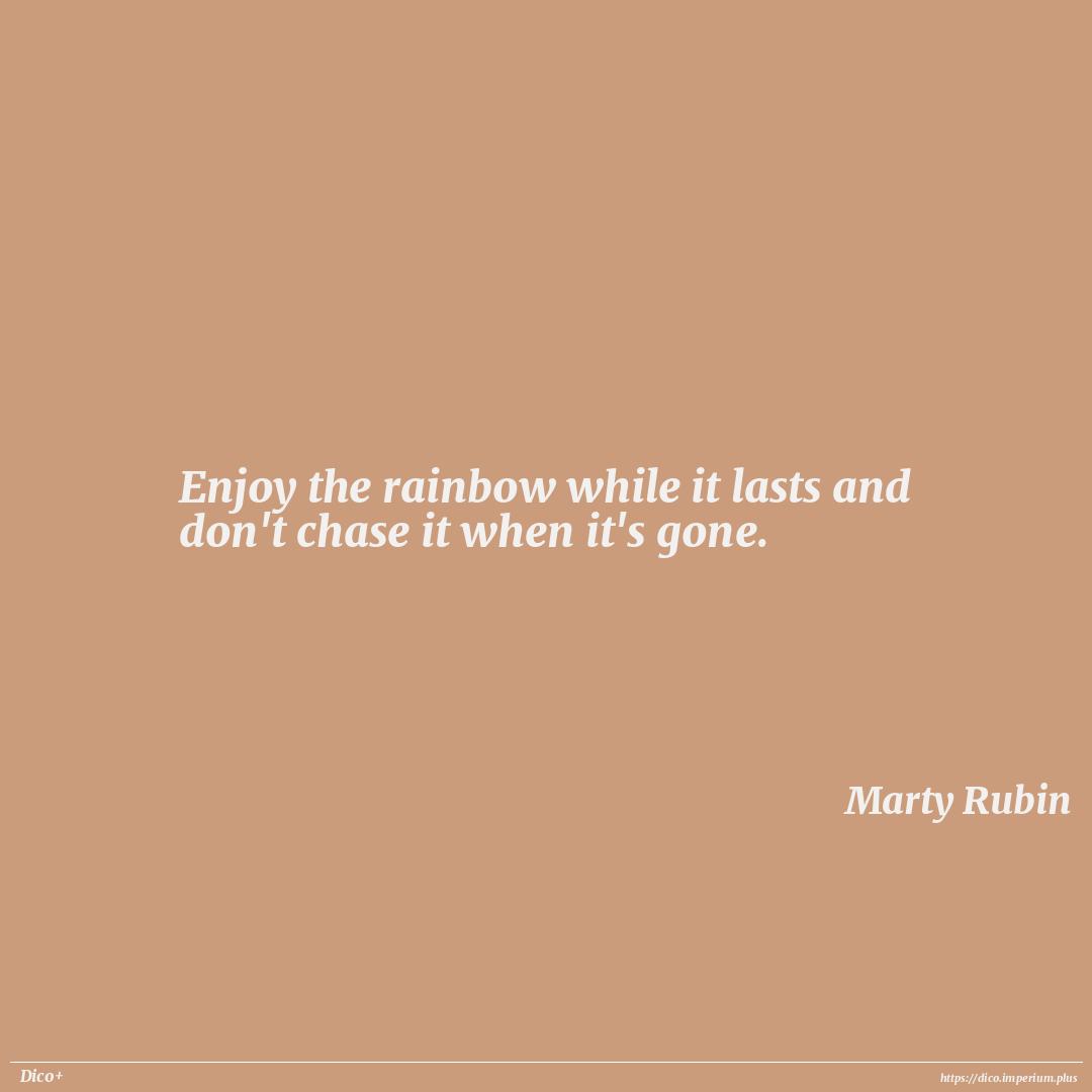 Enjoy the rainbow while it lasts and don't chase it when it's gone.
