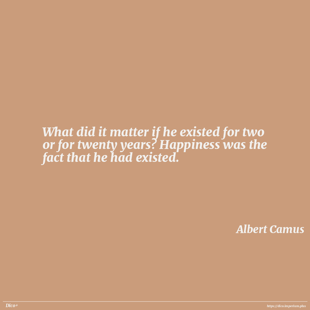 What did it matter if he existed for two or for twenty years? Happiness was the fact that he had existed.