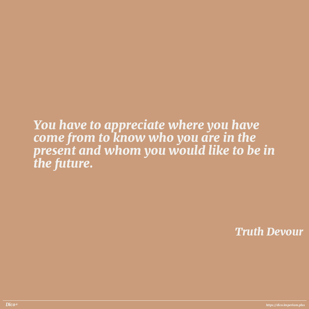 You have to appreciate where you have come from to know who you are in the present and whom you would like to be in the future.