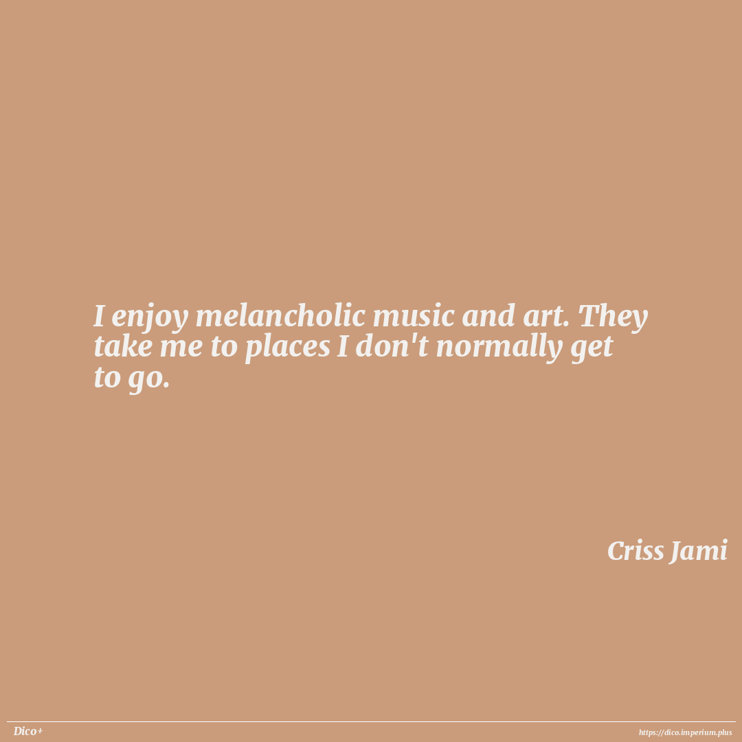 I enjoy melancholic music and art. They take me to places I don't normally get to go.