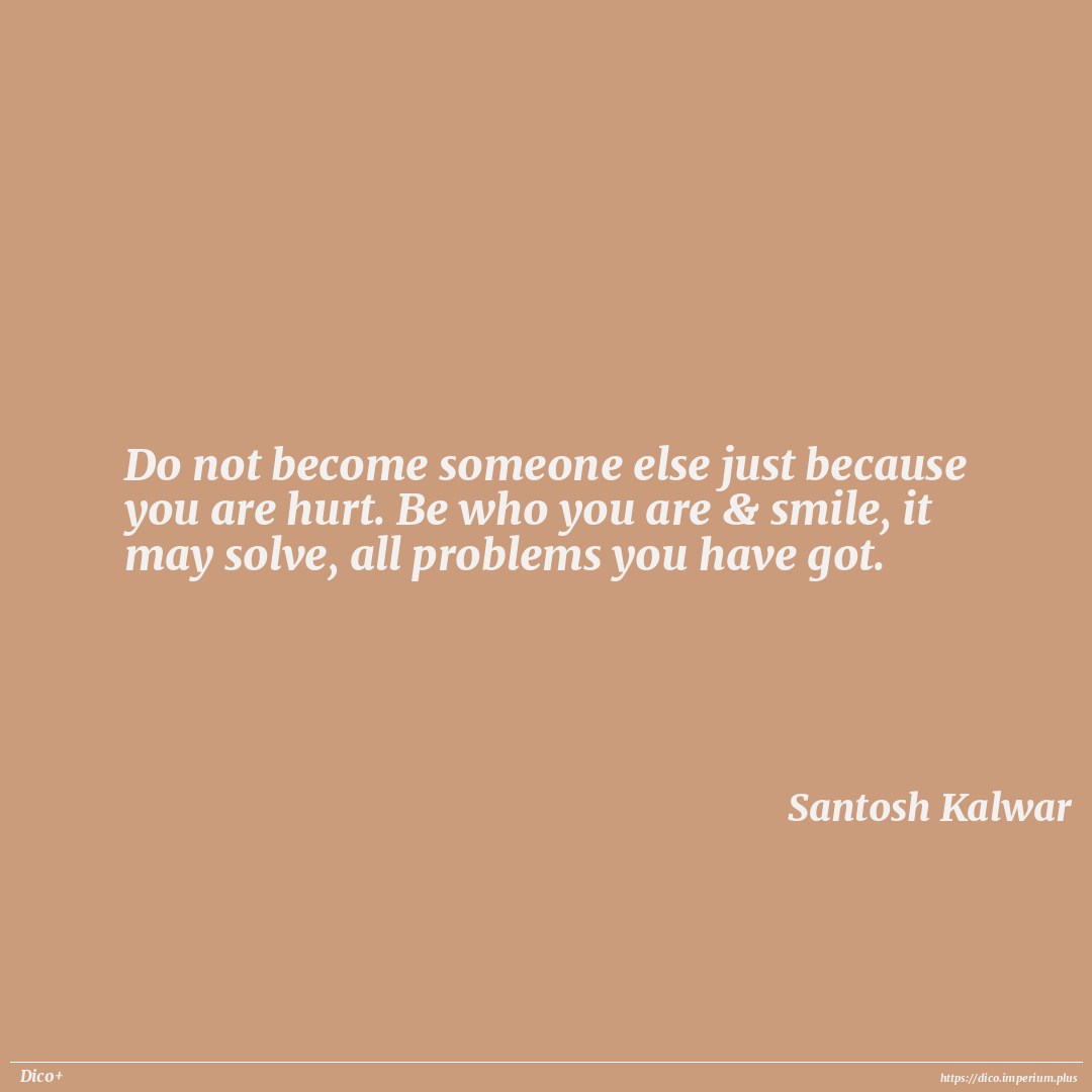 Do not become someone else just because you are hurt. Be who you are & smile, it may solve, all problems you have got.