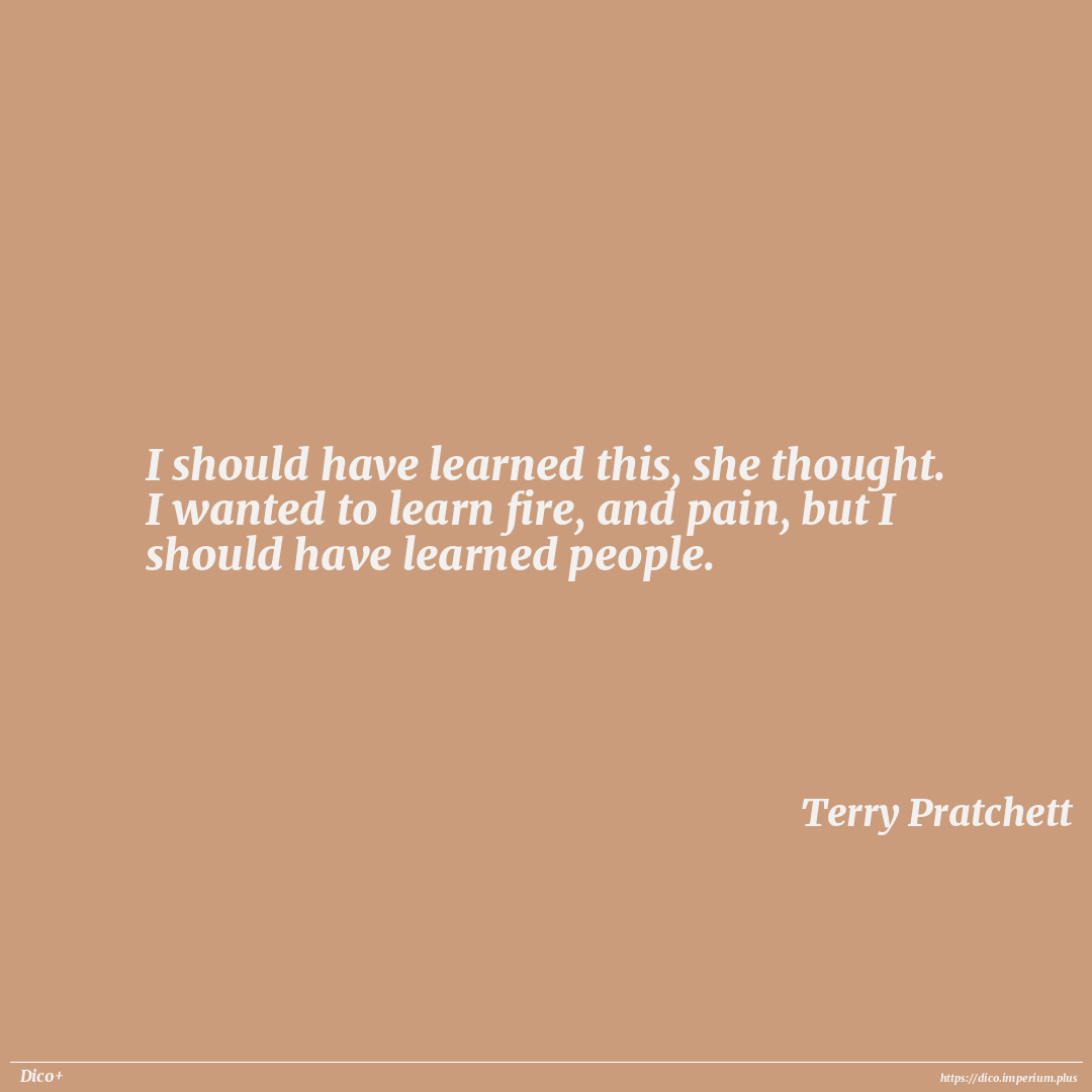 I should have learned this, she thought. I wanted to learn fire, and pain, but I should have learned people.