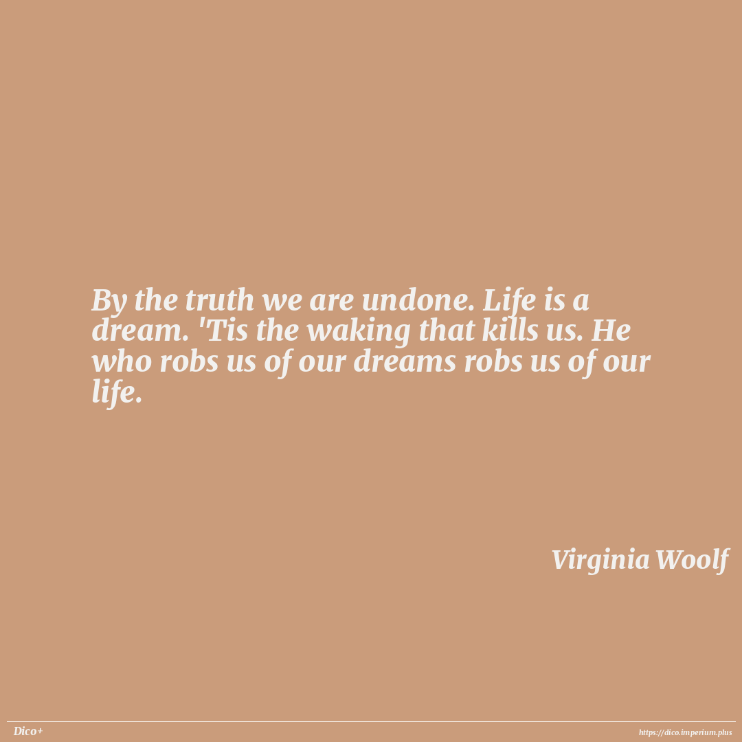 By the truth we are undone. Life is a dream. 'Tis the waking that kills us. He who robs us of our dreams robs us of our life.