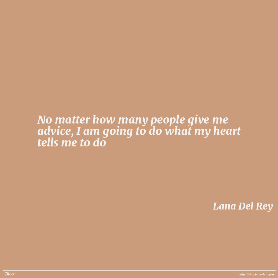 No matter how many people give me advice, I am going to do what my heart tells me to do