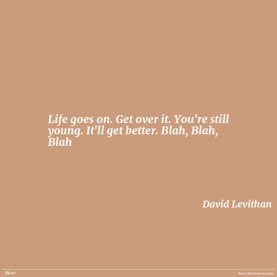 Life goes on. Get over it. You're still young. It'll get better. Blah, Blah, Blah