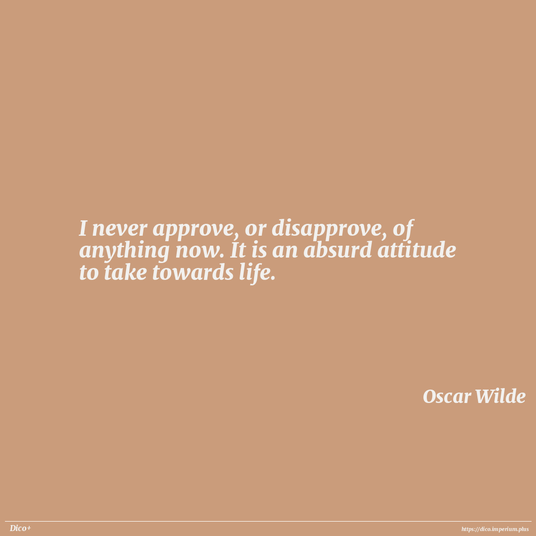 I never approve, or disapprove, of anything now. It is an absurd attitude to take towards life.