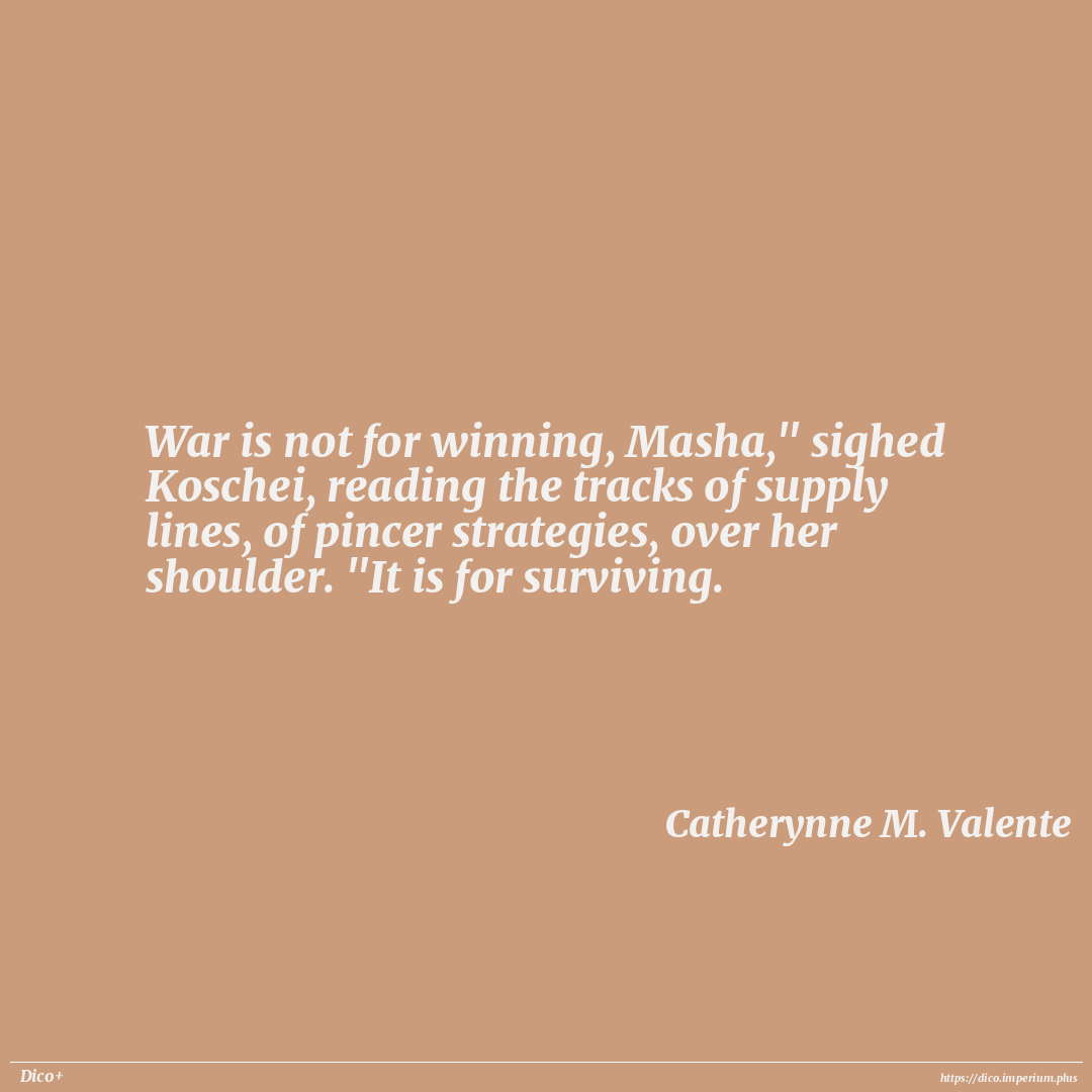 War is not for winning, Masha," sighed Koschei, reading the tracks of supply lines, of pincer strategies, over her shoulder. "It is for surviving.