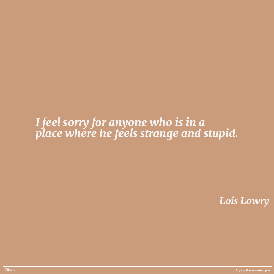 I feel sorry for anyone who is in a place where he feels strange and stupid.