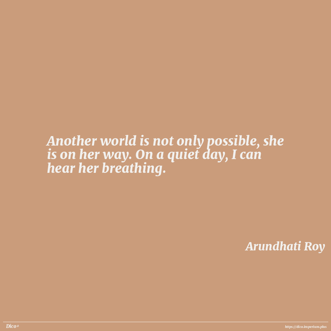 Another world is not only possible, she is on her way. On a quiet day, I can hear her breathing.