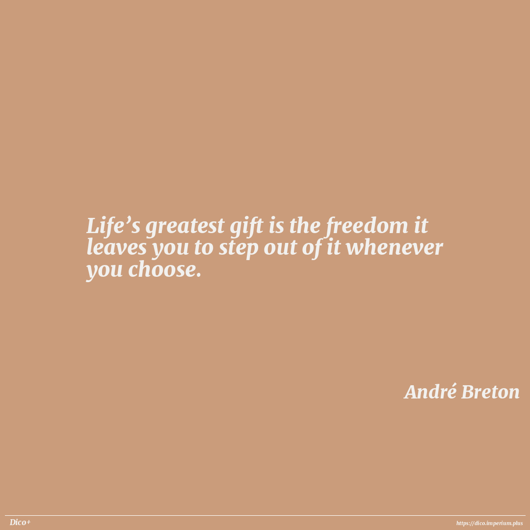 Life’s greatest gift is the freedom it leaves you to step out of it whenever you choose.