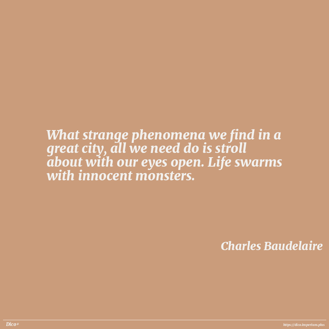 What strange phenomena we find in a great city, all we need do is stroll about with our eyes open. Life swarms with innocent monsters.