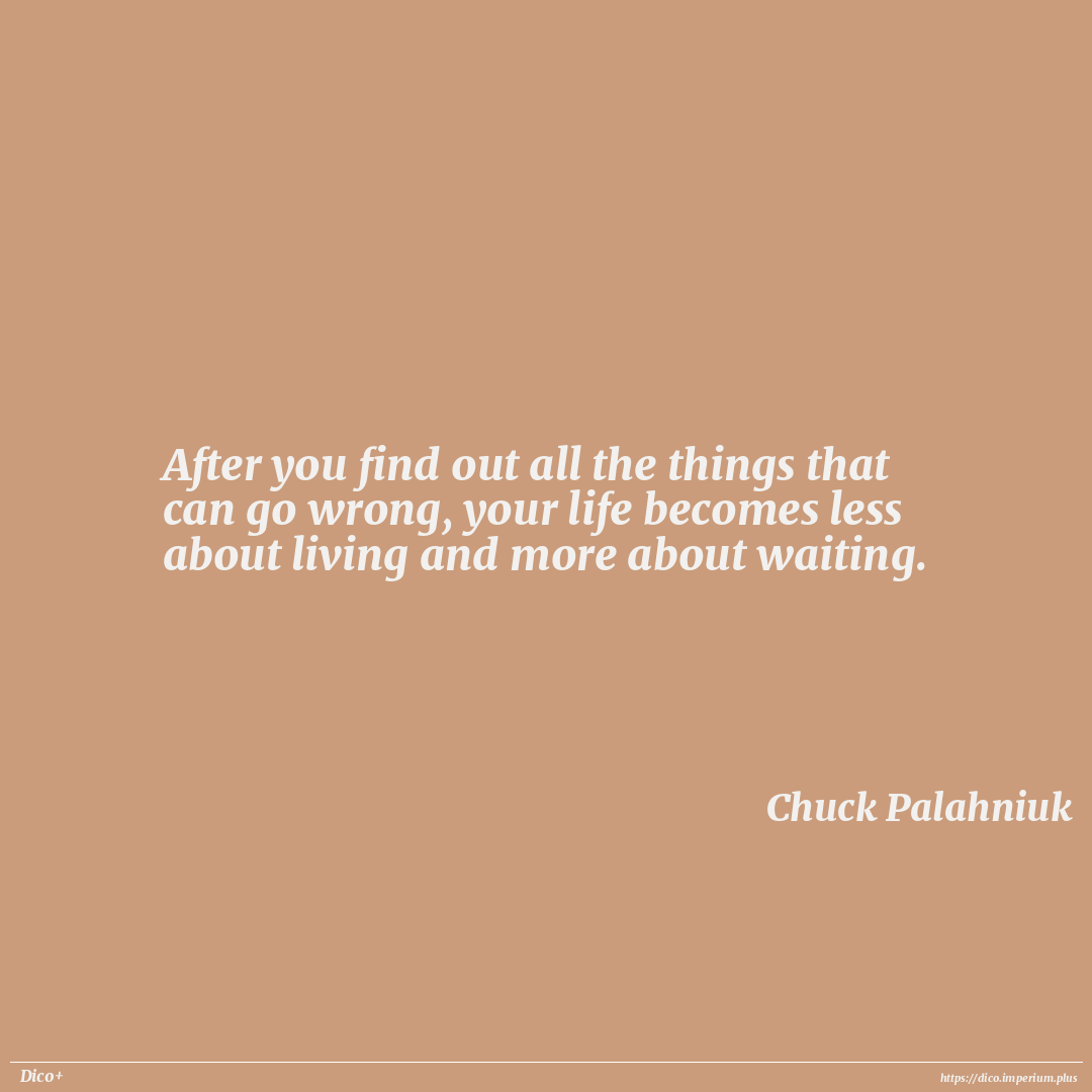 After you find out all the things that can go wrong, your life becomes less about living and more about waiting.